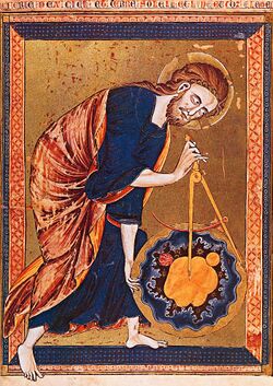 This 13th century frontispiece from the Codex Vindobonensis 2554 shows God as creator using a compass—so named not because it is used for navigation, but because it is used to draw arcs and circles.